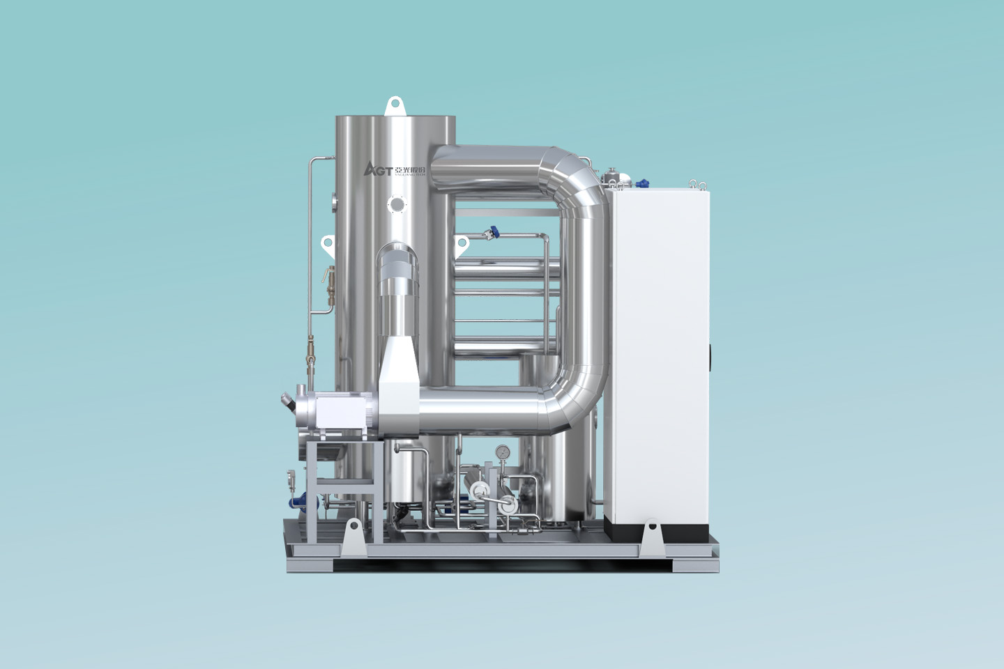 MVR熱泵精餾系統(tǒng)以高效旋轉(zhuǎn)精餾床為基礎(chǔ),利用離心力場代替重力場,強(qiáng)化相與相之間的相對速度和相互接觸,通過強(qiáng)化傳質(zhì)傳熱來提高分離效率縮小設(shè)備體積。 通過在系統(tǒng)中引入適用于小流量、大壓比的螺桿式蒸汽壓縮機(jī),即可實現(xiàn)MVR循環(huán)熱泵精餾。